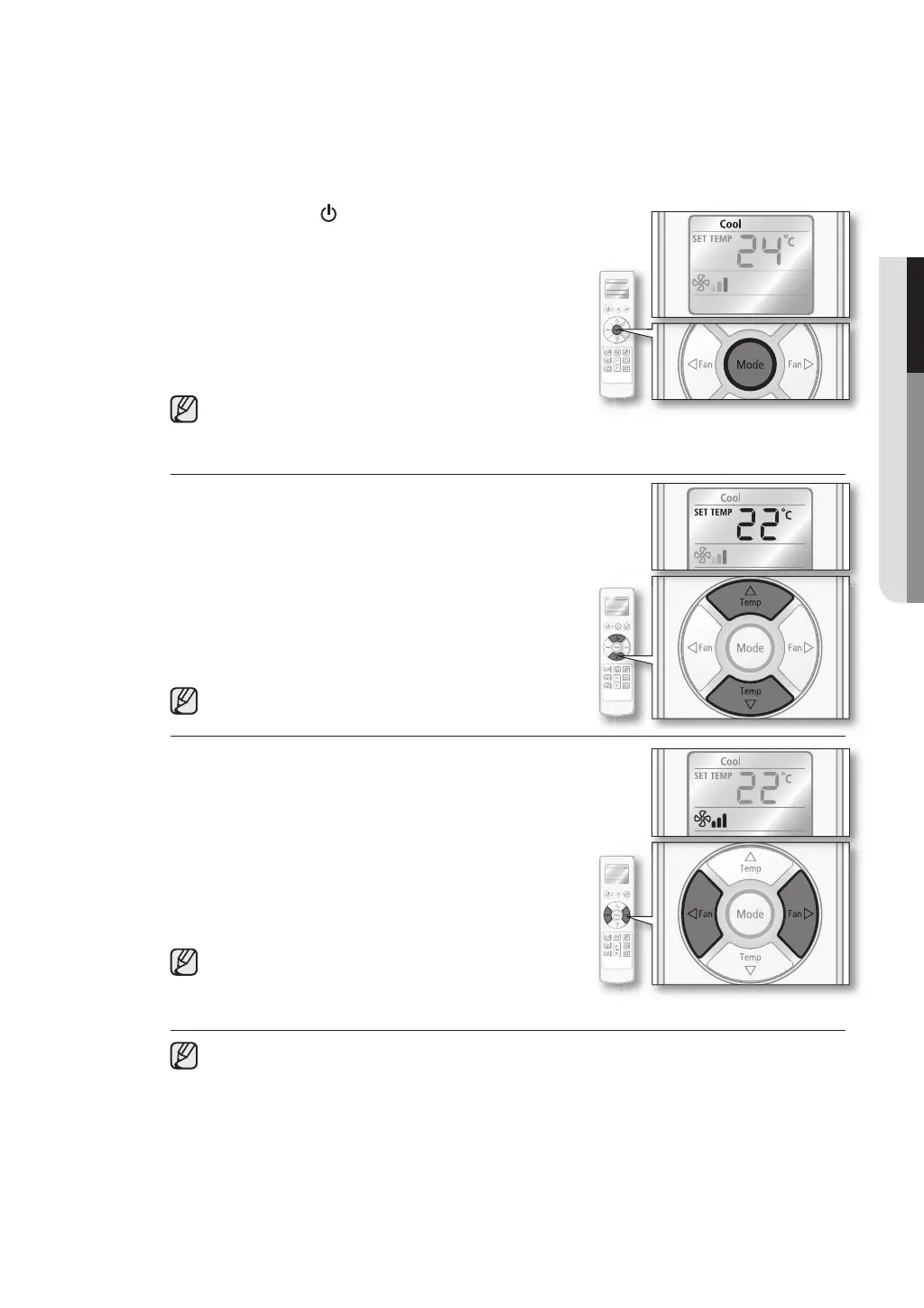 In Cool mode, the air conditioner will cool your room. You can adjust the temperature and the