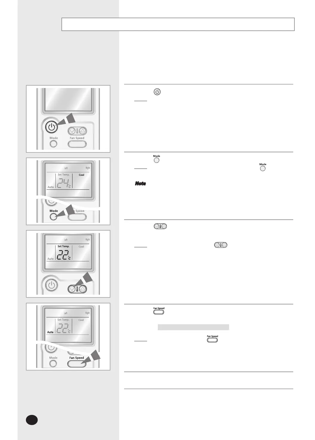 Press the button to select the fan speed until the required setting is