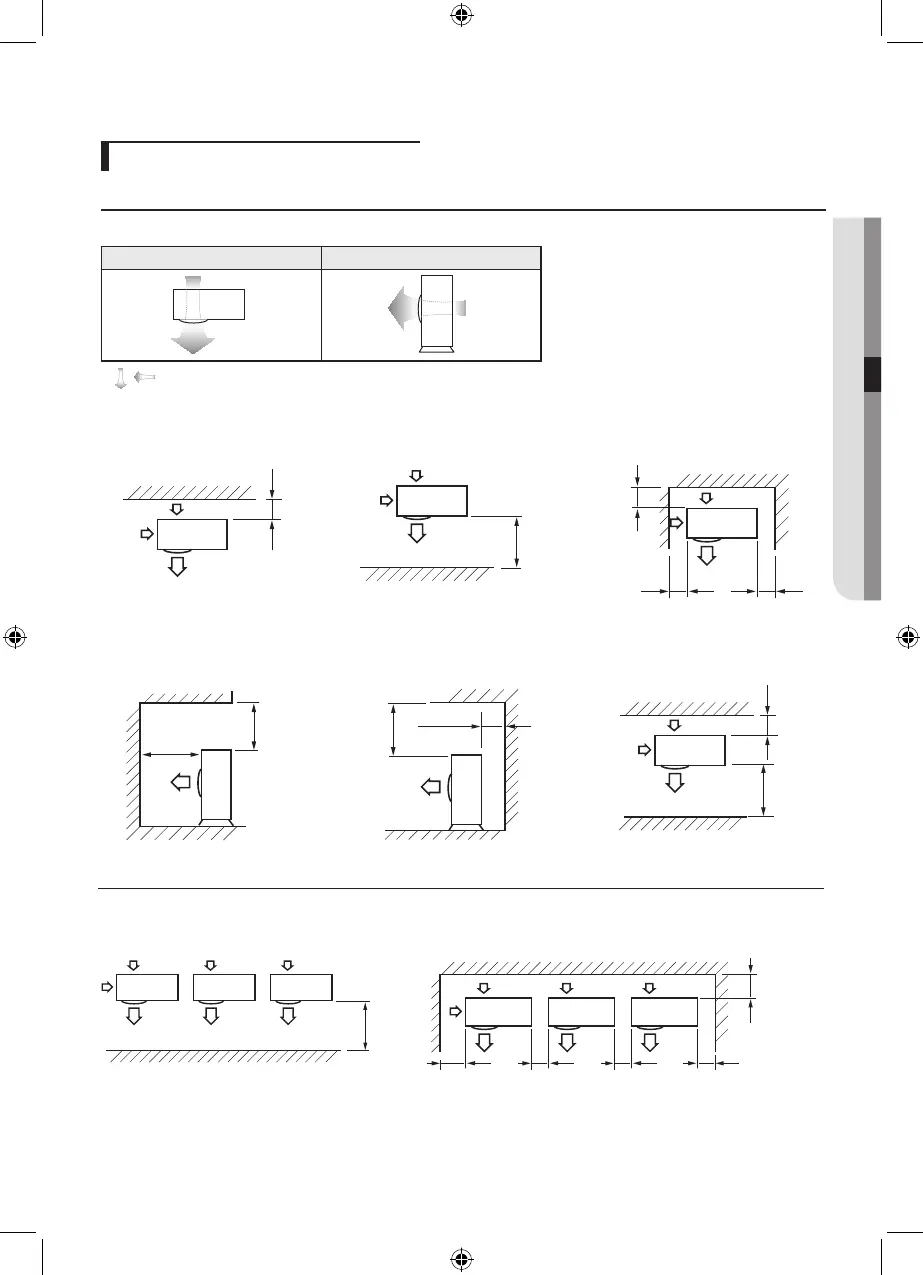 When the air outlet is towards the wall When 3 sides of the outdoor unit are blocked by the wall