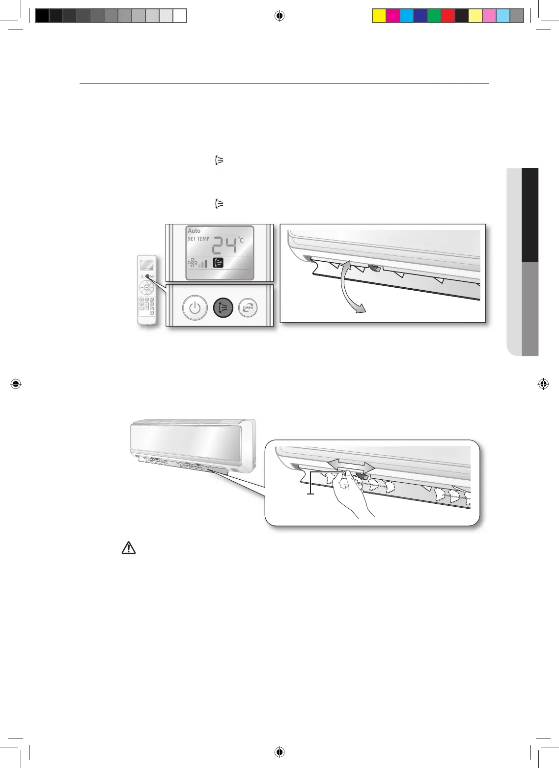 Be extremely careful with your fingers while adjusting the Horizontal air flow direction.