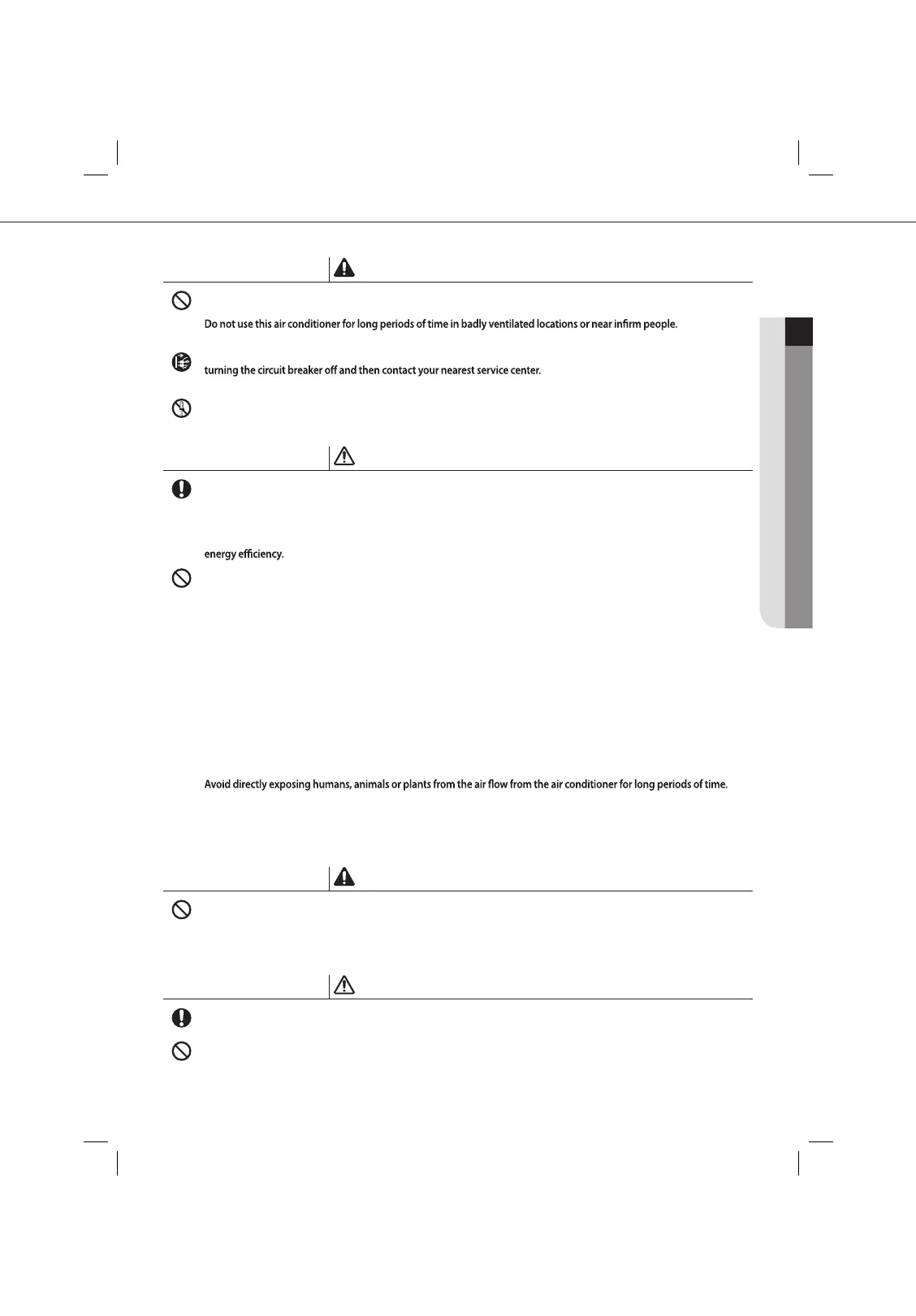 Do not use this air conditioner to preserve precision equipment, food, animals, plants or cosmetics, or for any other
