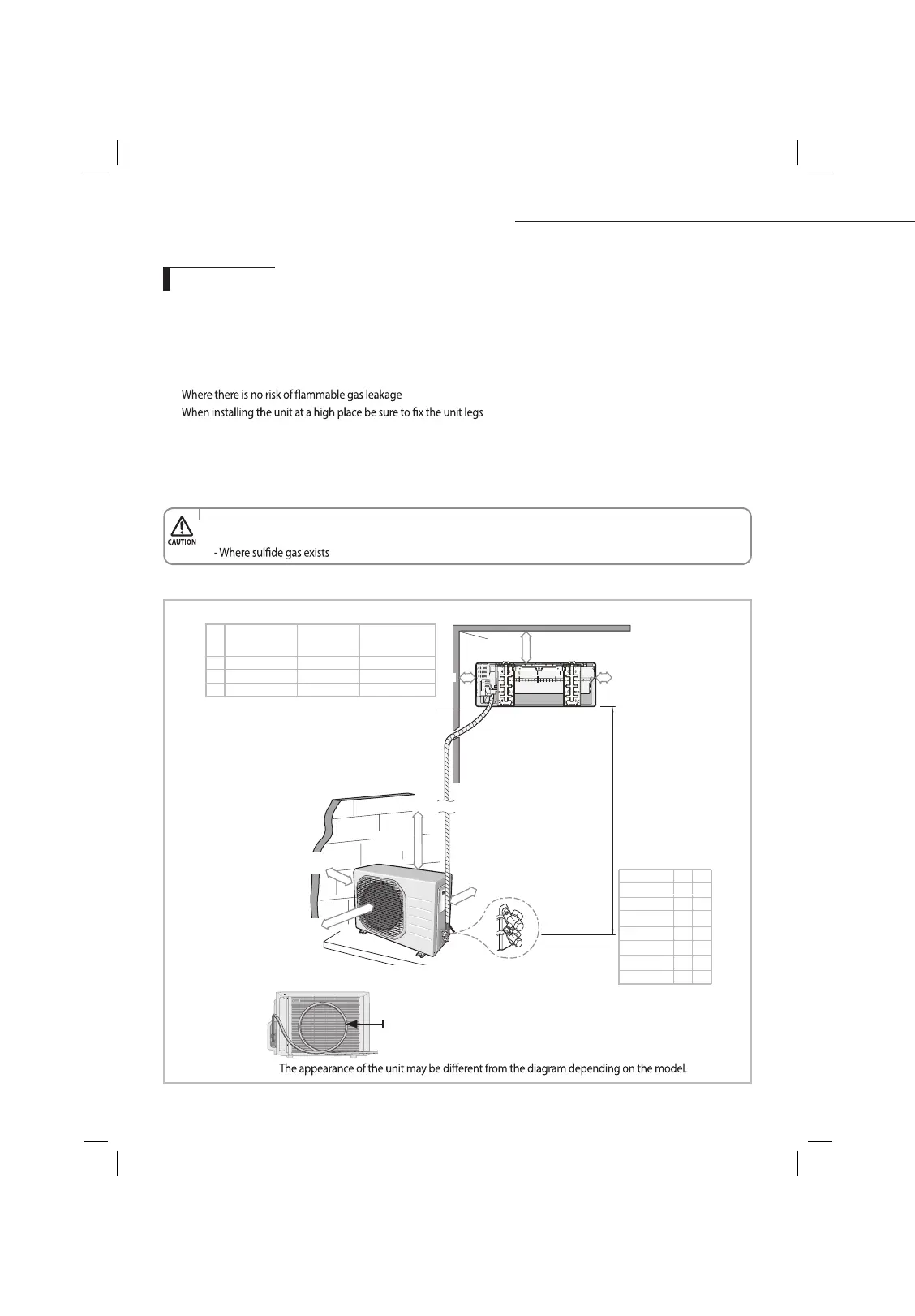 Observe the clearances and maximum lengths as seen in the picture below when installing the air conditioner.