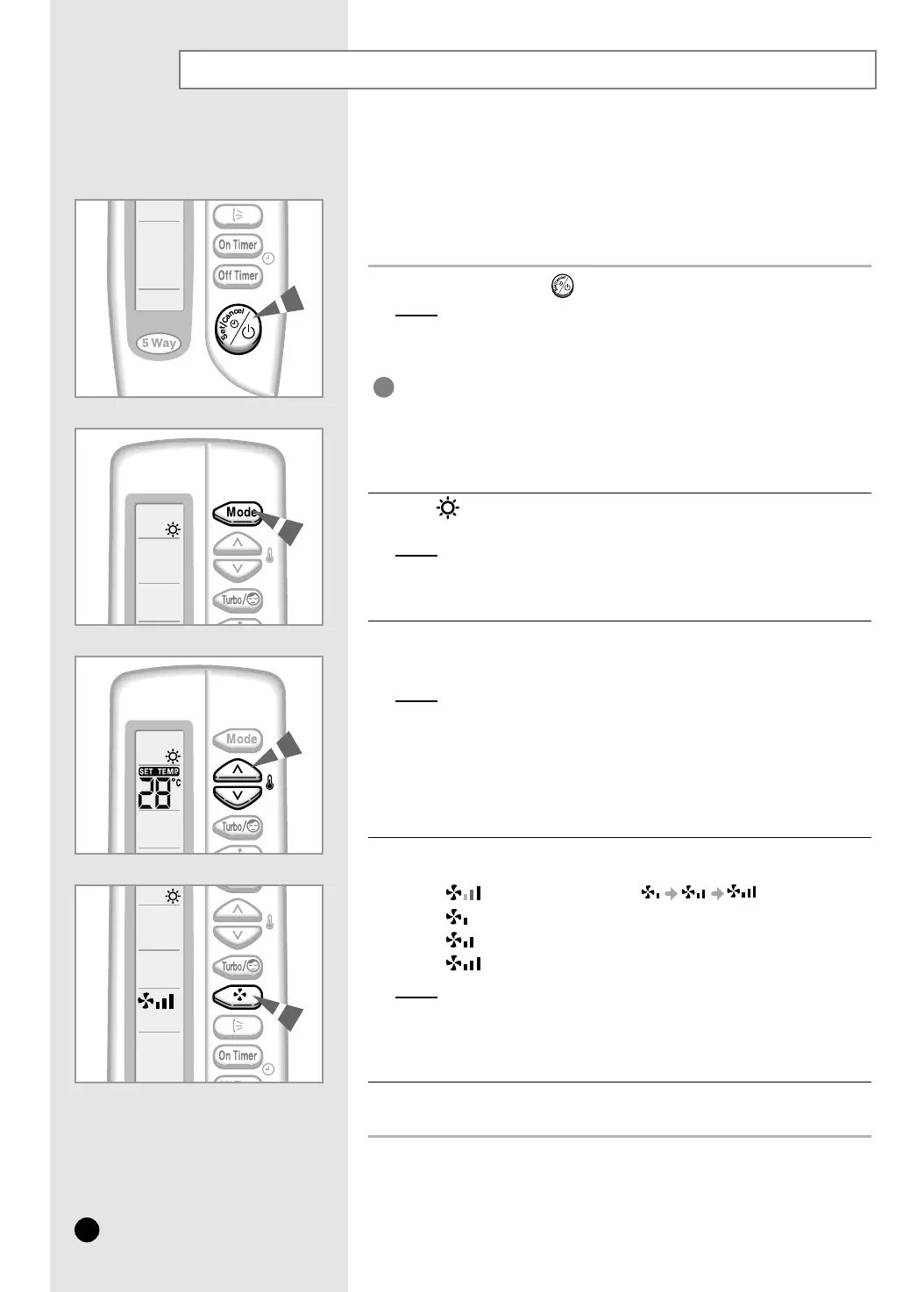 4 Select the fan speed by pressing the FAN button one or more times