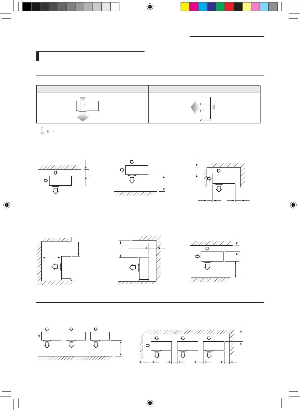 When the air outlet is towards the wall When 3 sides of the outdoor unit are blocked by the wall
