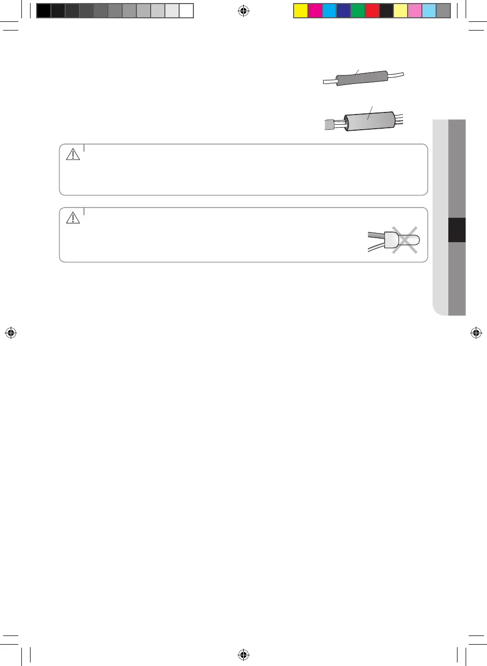 • Be sure to use insulation tape and a contraction tube made of approved reinforced insulating