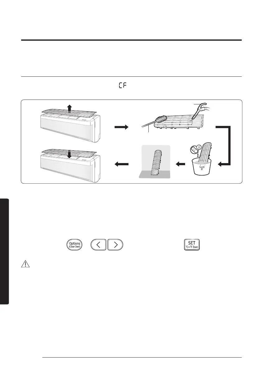 Clean the air filter every two weeks or when the (filter-cleaning reminder) appears on the indoor unit