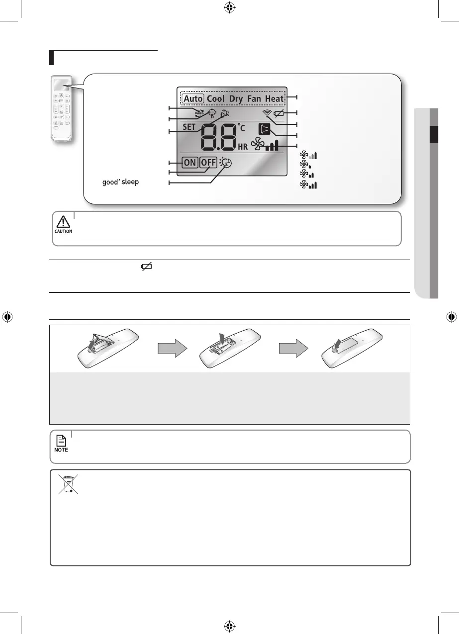 When the battery is exhausted, ( ) will be displayed in the remote controller display. When the icon appears, change the