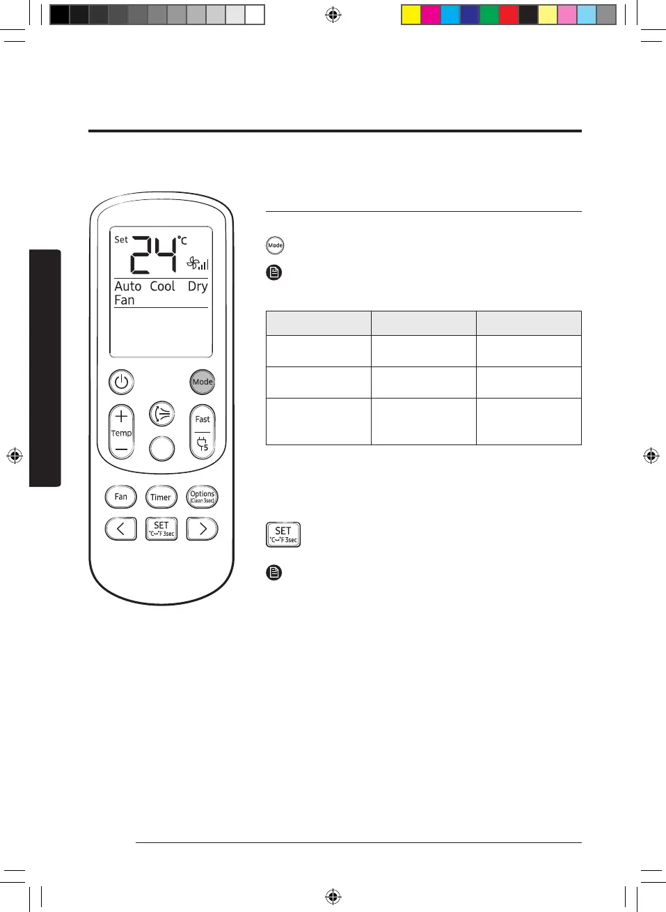 To change the current mode between Auto, Cool, Dry, Fan, press the