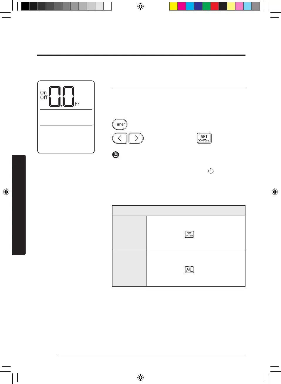 • When you start the Timed on/off function, the