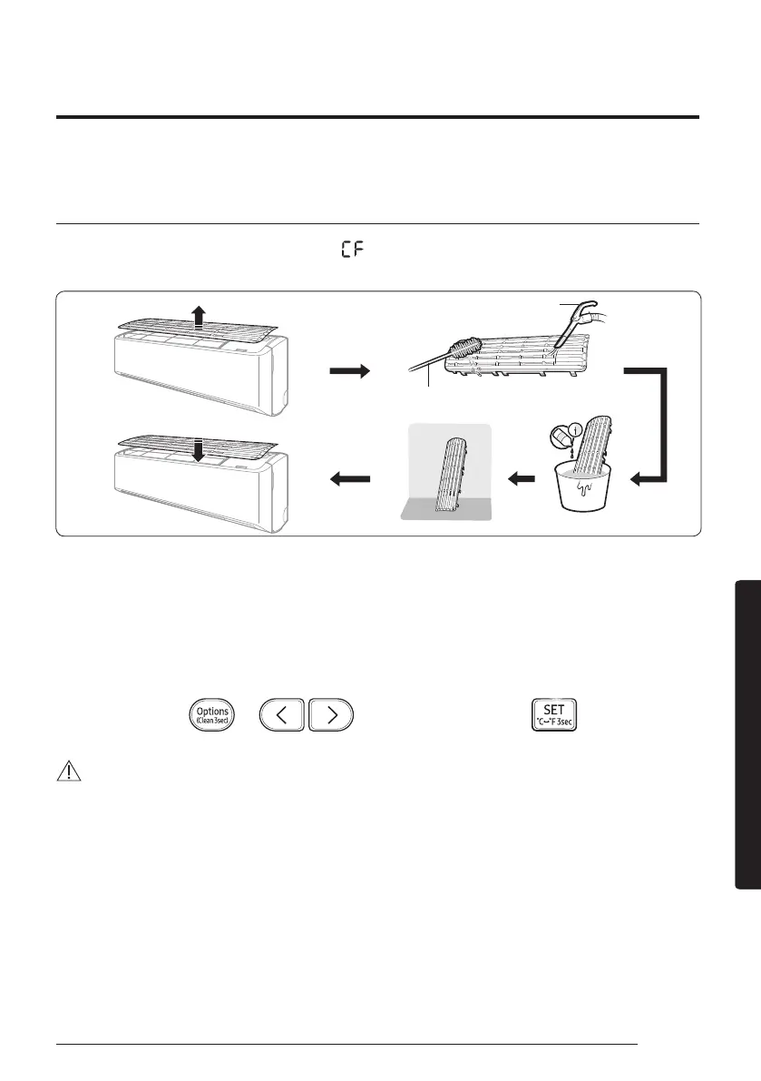 Clean the air filter every two weeks or when the (filter-cleaning reminder) appears on the indoor unit
