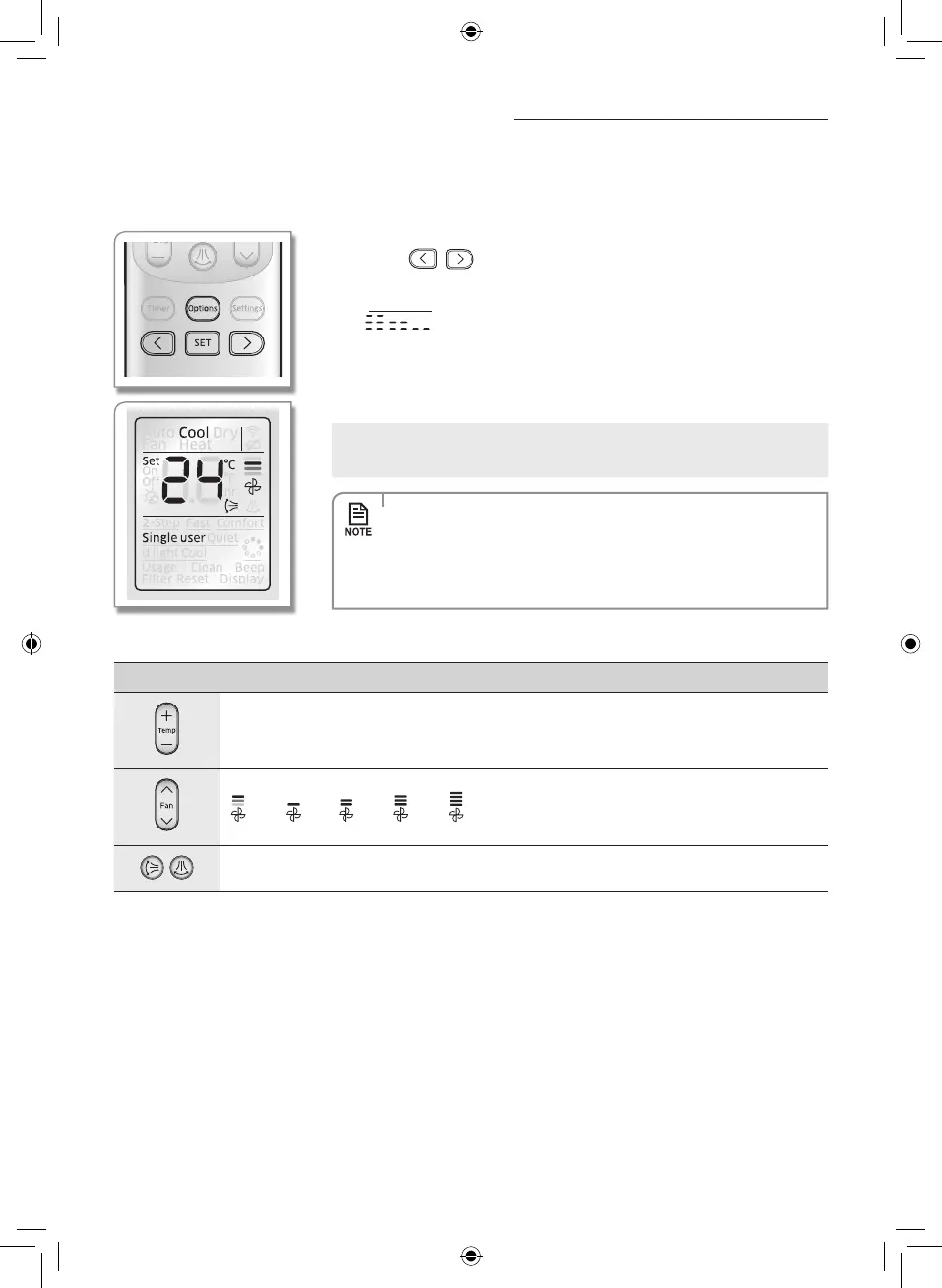 You can adjust the set temperature by 1 °C within the range of 24 °C ~ 30 °C in Cool mode and 16 °C ~ 30 °C