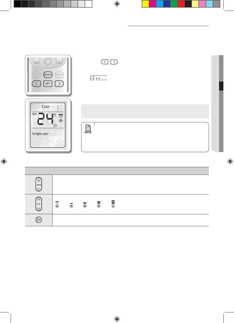 You can adjust the set temperature by 1 °C within the range of 24 °C ~ 30 °C in Cool mode and 16 °C ~ 30 °C