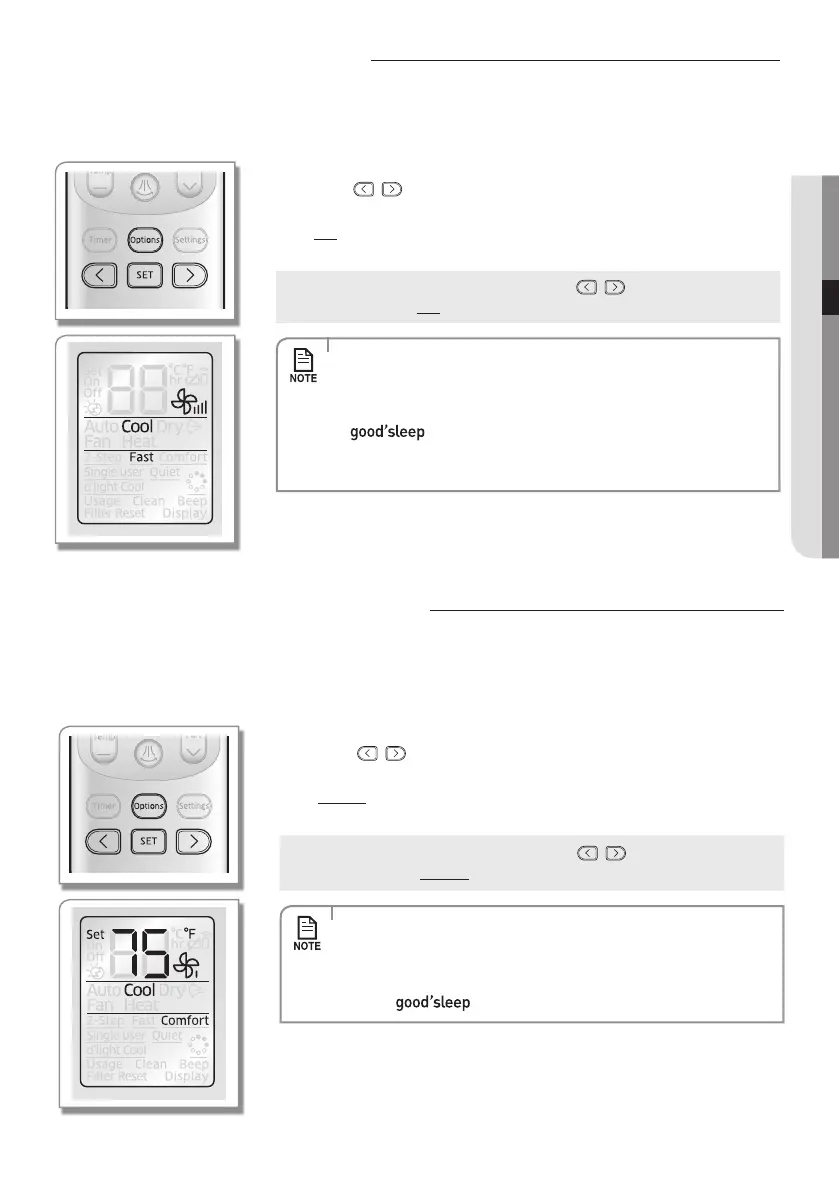 • If the Fast function is selected while 2-Step Cooling/Comfort/Single user/Quiet/