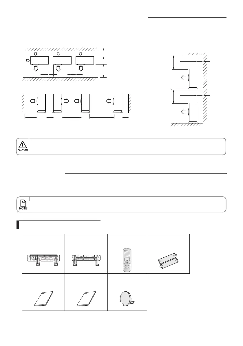 When front and rear side of the outdoor unit is towards the wall