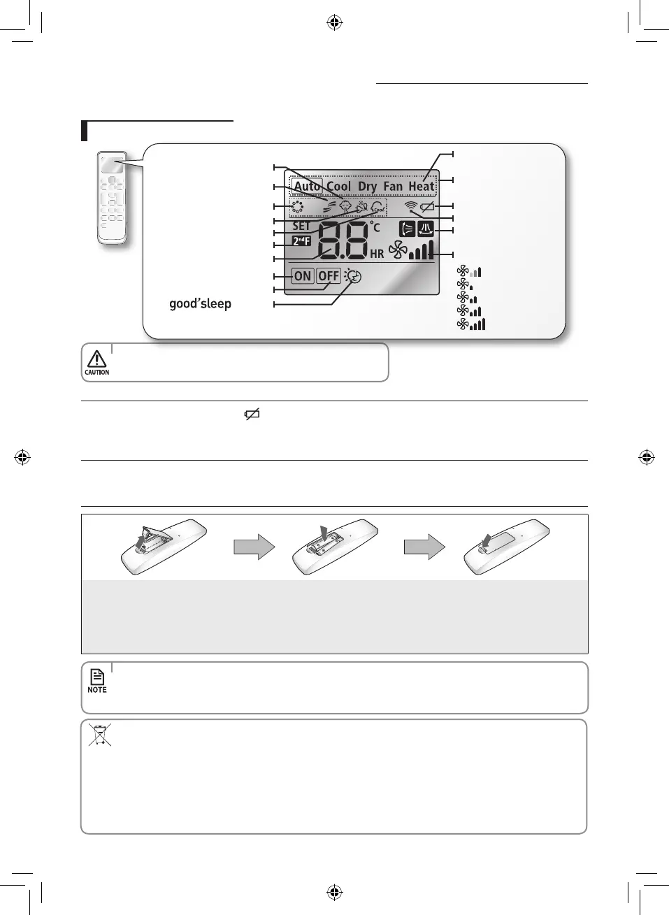 batteries. The remote controller requires two 1.5 V AAA type batteries.