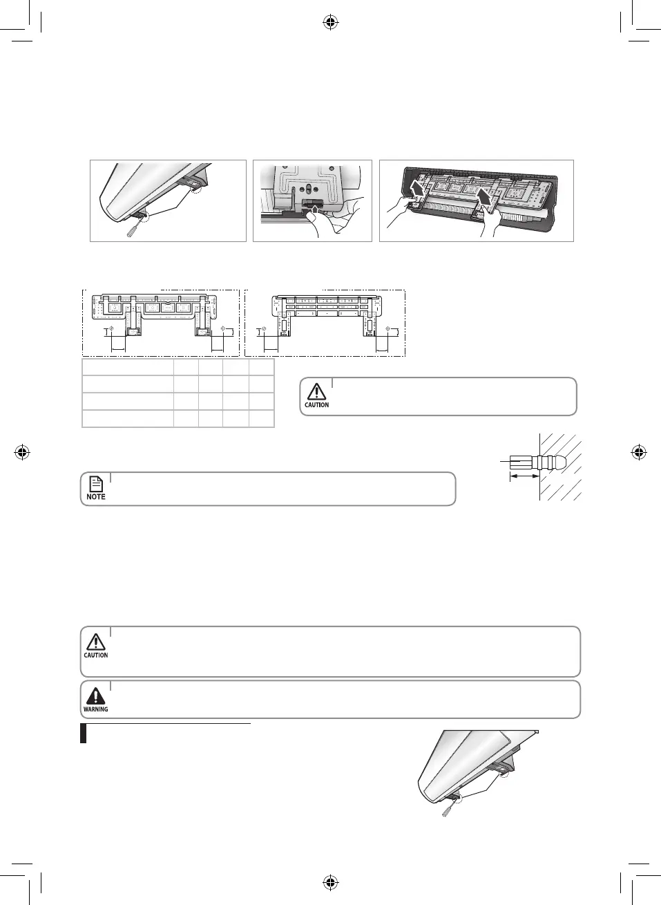 Use 2 screws to x the indoor unit with hanger plate as shown in the picture.