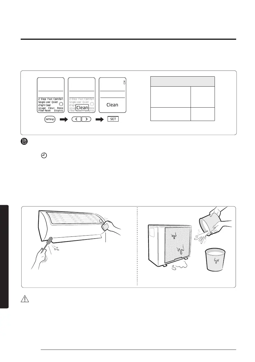 • When the air conditioner is off, Auto clean starts immediately when it is selected. When the air conditioner