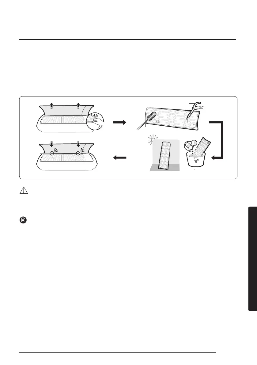 • If the air filter dries in a humid area, it may produce offensive odours. Clean it again and dry it in a well-