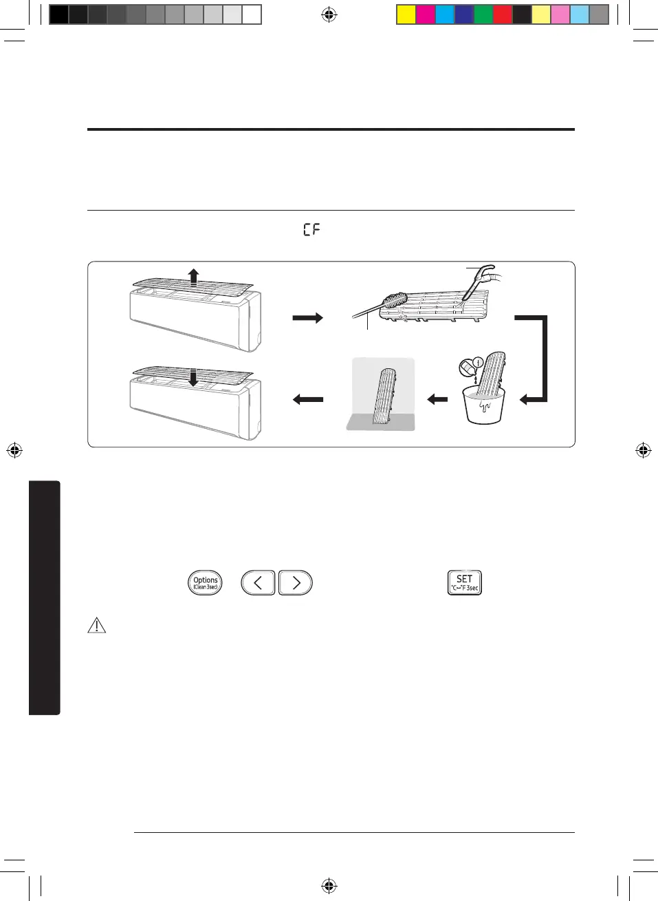 Clean the air filter every two weeks or when the (filter-cleaning reminder) appears on the indoor unit