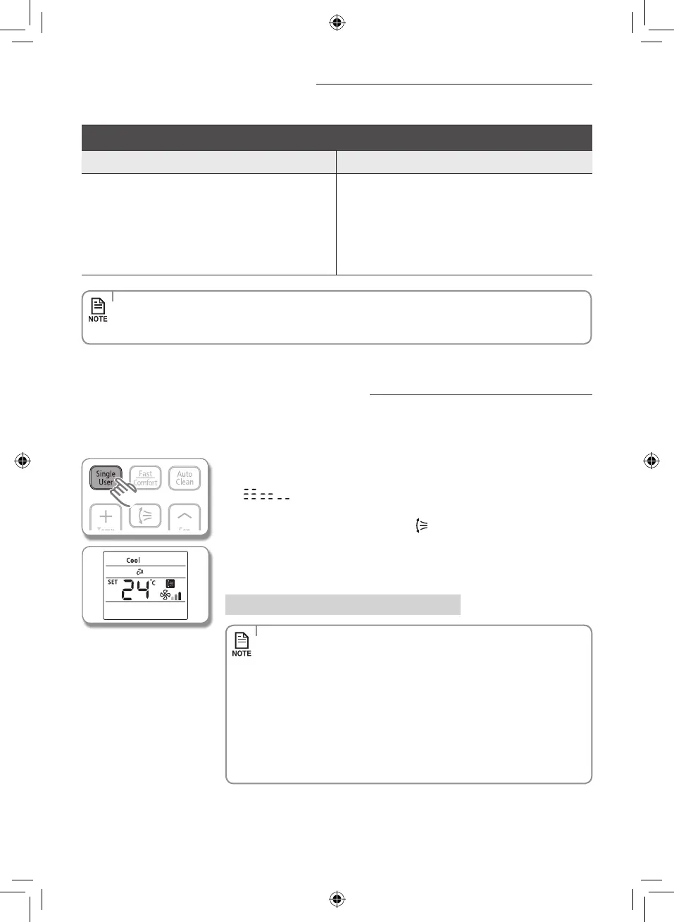 • WhenSingleUserfunctionisactivatedinCoolmode,temperaturerangewill