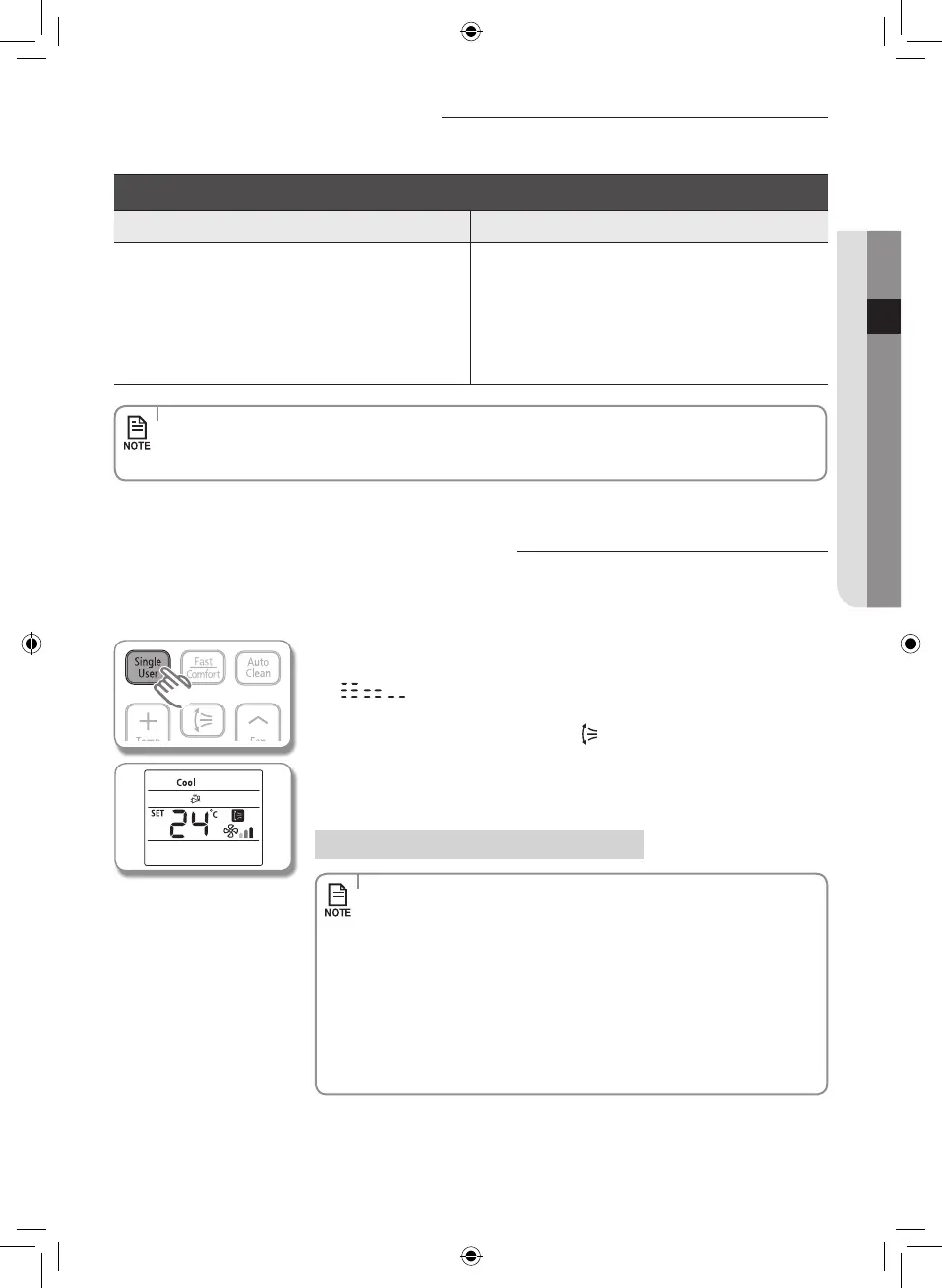 • WhenSingleUserfunctionisactivatedinCoolmode,temperaturerangewill