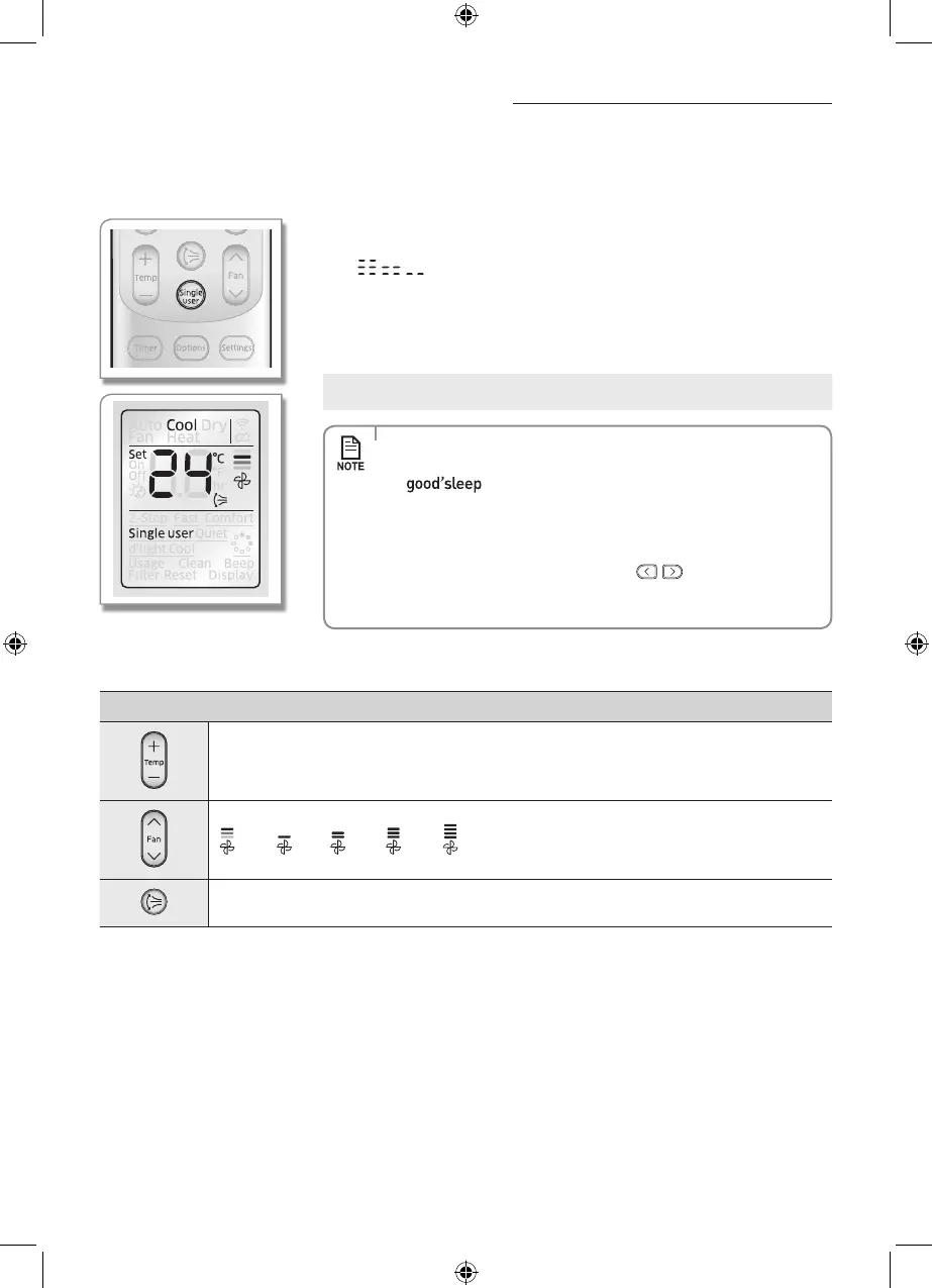 • Single user function is only available in Cool mode.