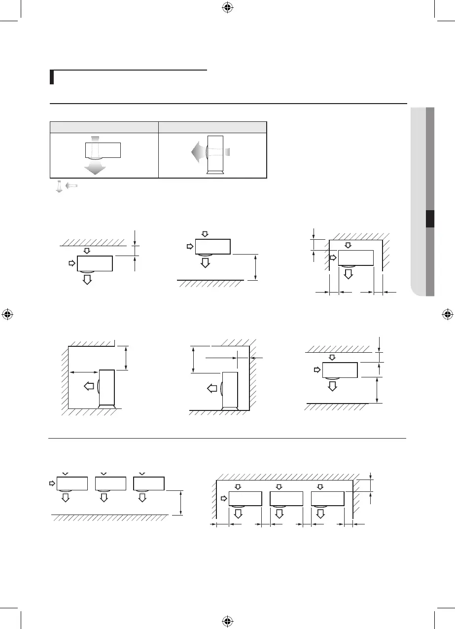 When the air outlet is towards the wall When 3 sides of the outdoor unit are blocked by the wall