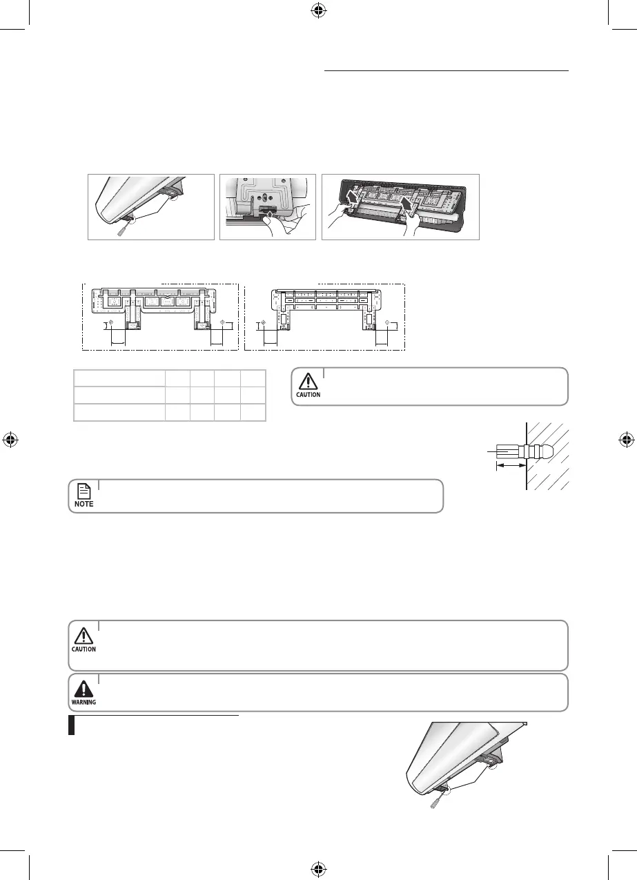 Use 2 screws to x the indoor unit with hanger plate as shown in the picture.