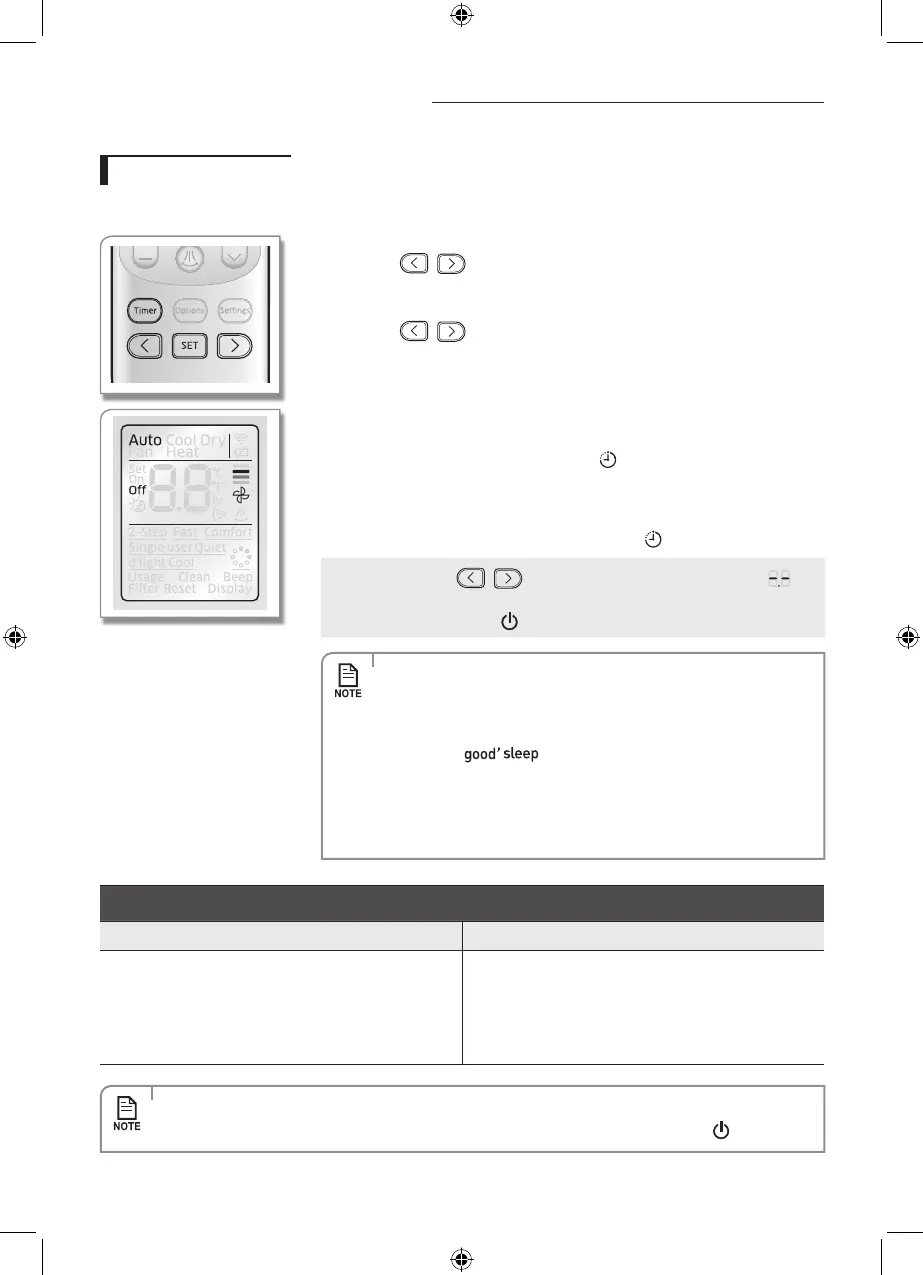 - (O) indicator and the set time of the timer will be displayed on the remote