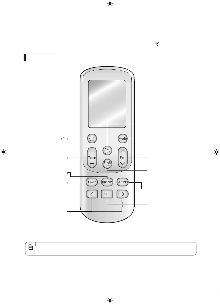 • เมื่อกดปุ่มบนรีโมทคอนโทรลถูกต้อง คุณจะได้ยินเสียงบี๊บจากชุดปรับอากาศ และไฟแสดงสถานะการส่งสัญญาณ( ) จะปรากฏขึ้นบนจอแสดงผล