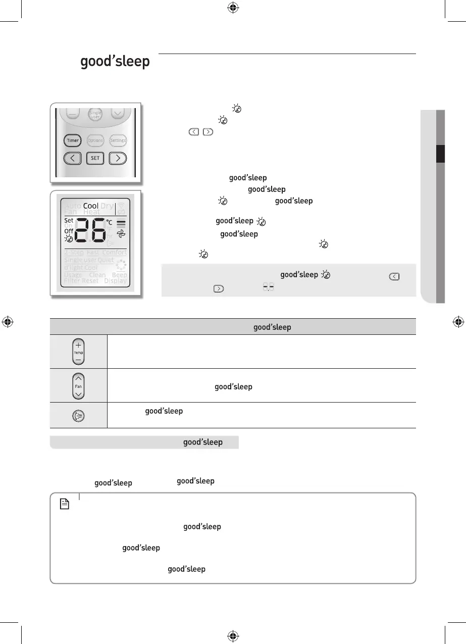 • Sound sleep (หลับสนิท): ทำาให้ร่างกายคุณผ่อนคลายและเพิ่มอุณหภูมิภายในห้องเพียงเล็กน้อย