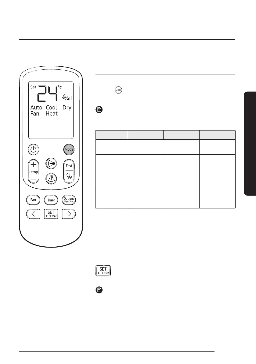 To change the current mode between Auto, Cool, Dry, Fan, and Heat,