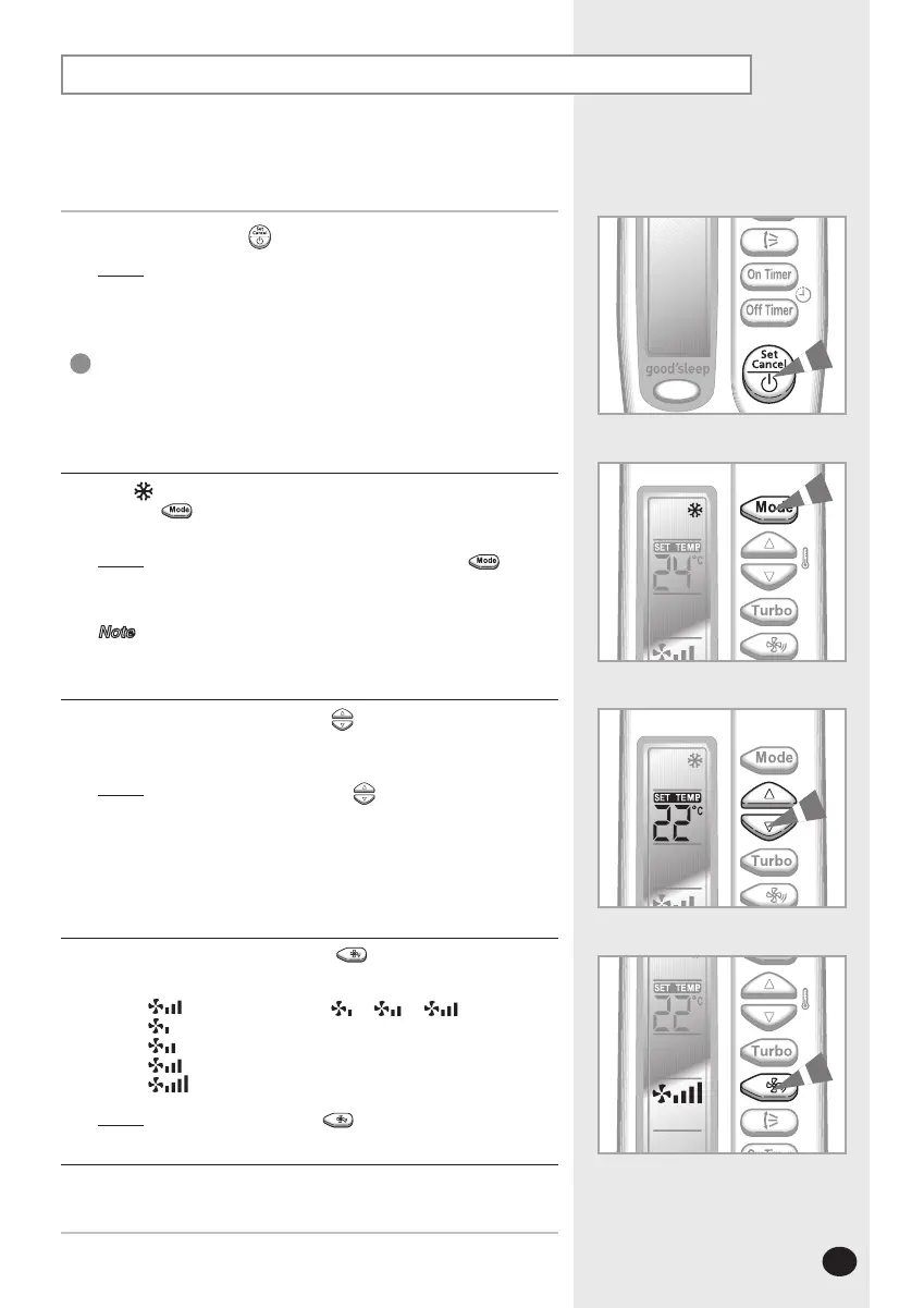 4 Select the fan speed by pressing the button one or more times