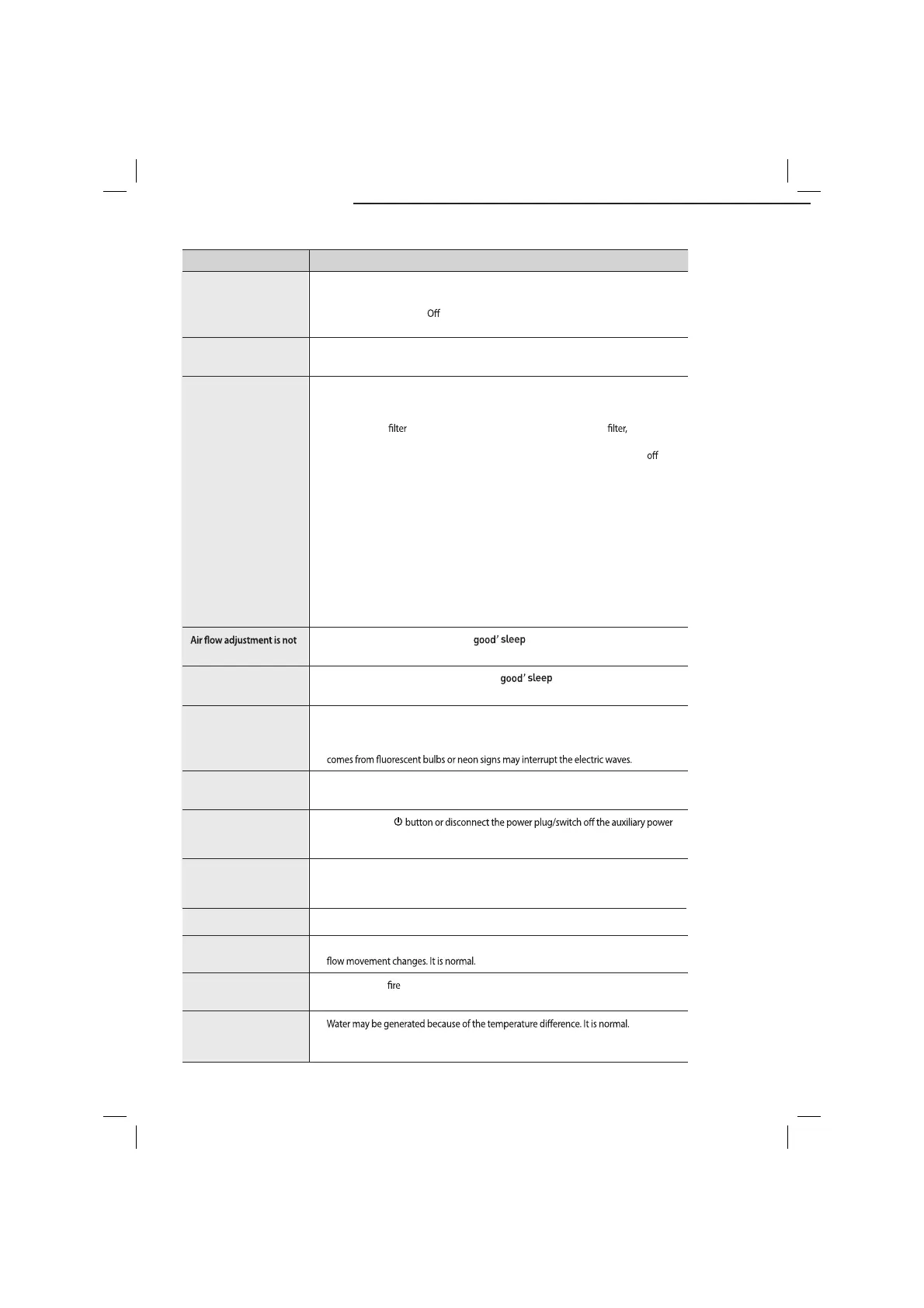 Refer to the following chart if the air conditioner operates abnormally. This may save time and unnecessary expenses.