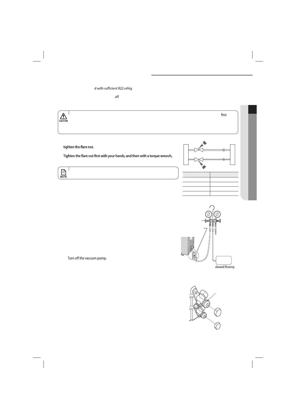 5. Purge the air in the connected pipes using the vacuum pump for about