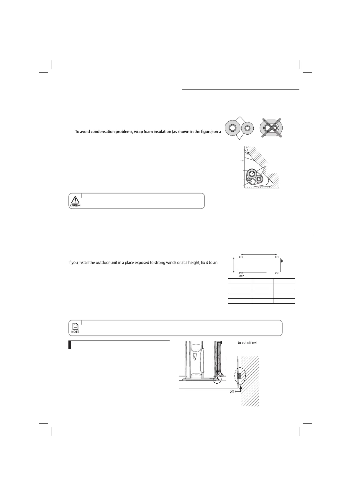 Install the outdoor unit in level on a stable base to avoid the generation of noise and vibration,