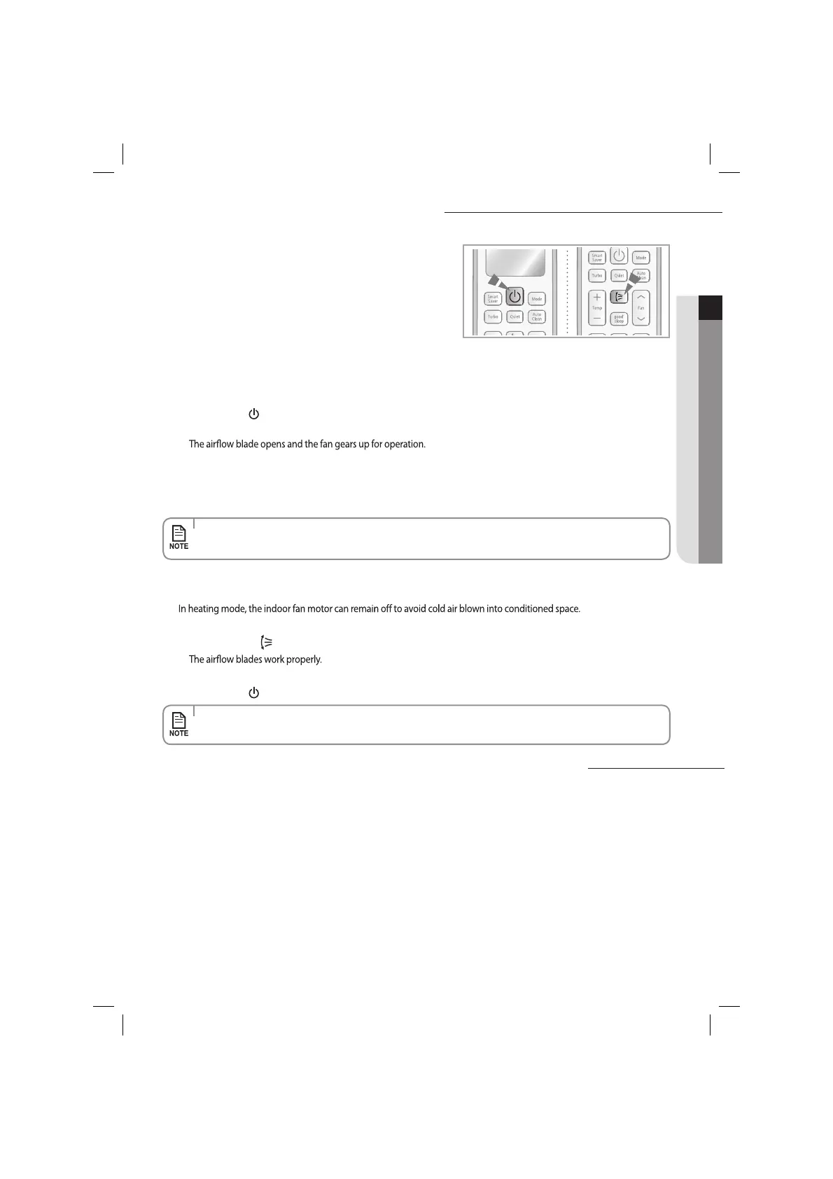 t Approximately 3~5 minutes later, outdoor unit will start to operate and the Cool or Warm air will blow out.