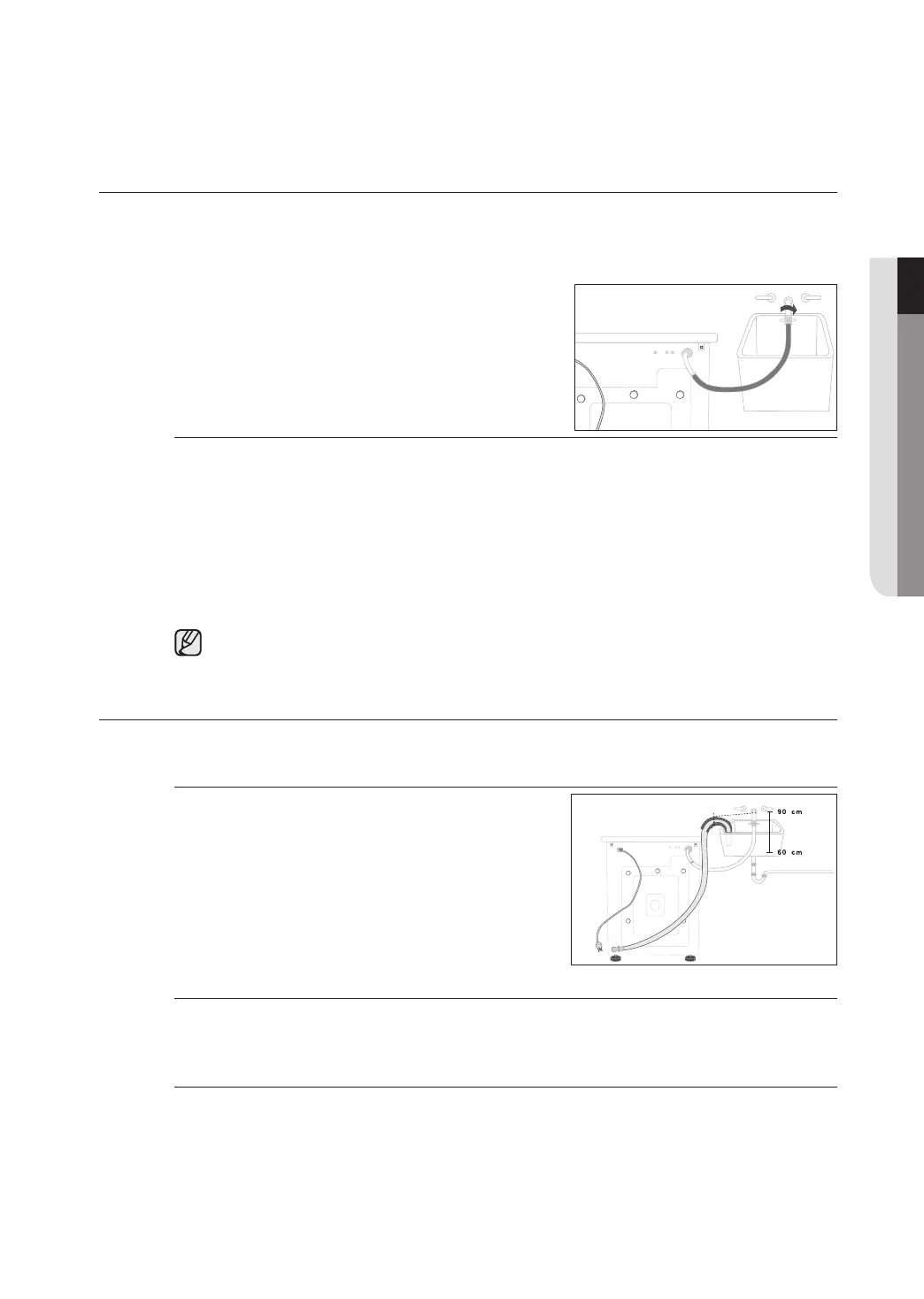 The drain pipe branch must be above the sink siphon so that the end of the hose is at least 60