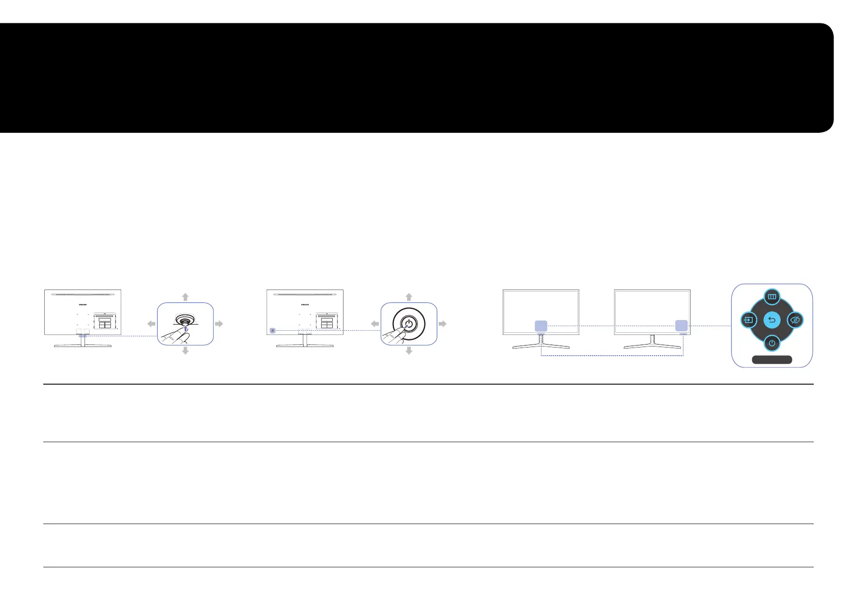 JOG button is located in the bottom of the screen center, and has 5 directions as UP/DOWN/LEFT/RIGHT/PRESS(ENTER). (C27JG50QQ* / C27JG52QQ* / C27JG54QQ* / C27JG56QQ* / C32JG50QQ* /