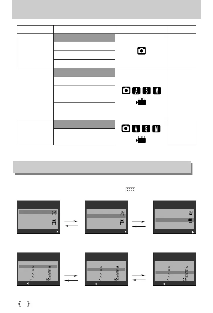 1. Turn on the camera and press the MENU button. A menu for each camera mode appears.