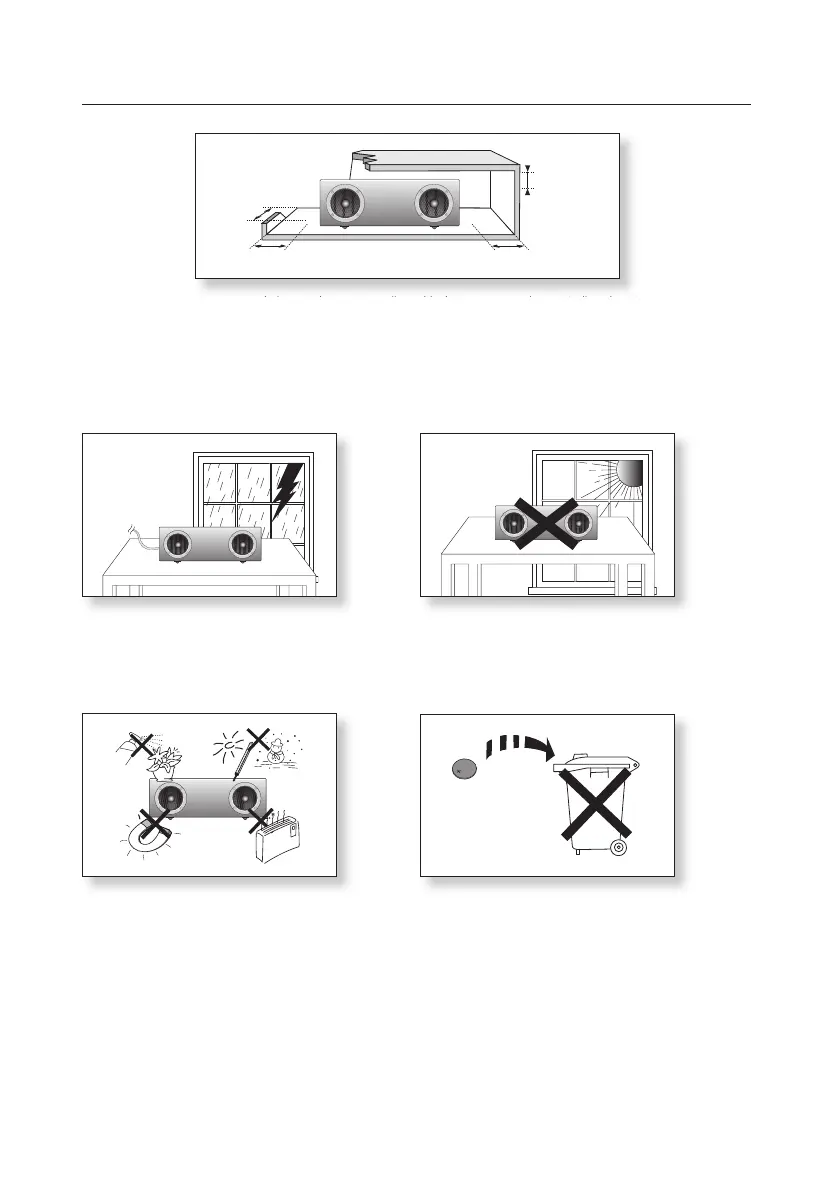 enough space around it for ventilation (70~100 mm). Make sure the ventilation slots are not covered. Do not place