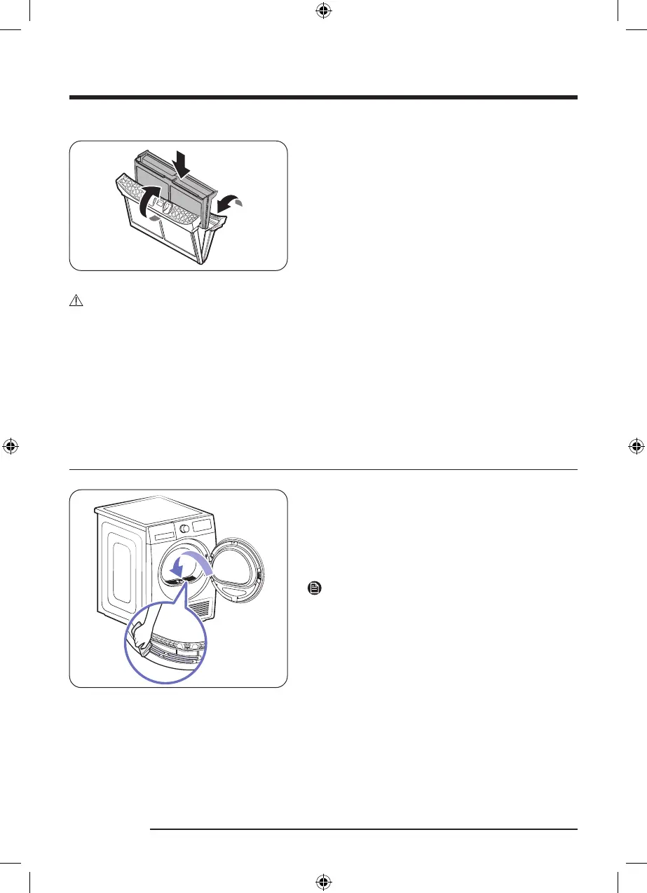 - Als u een nat filter terugplaatst kan schimmel of geurvorming ontstaan en/of kan de droogefficiëntie