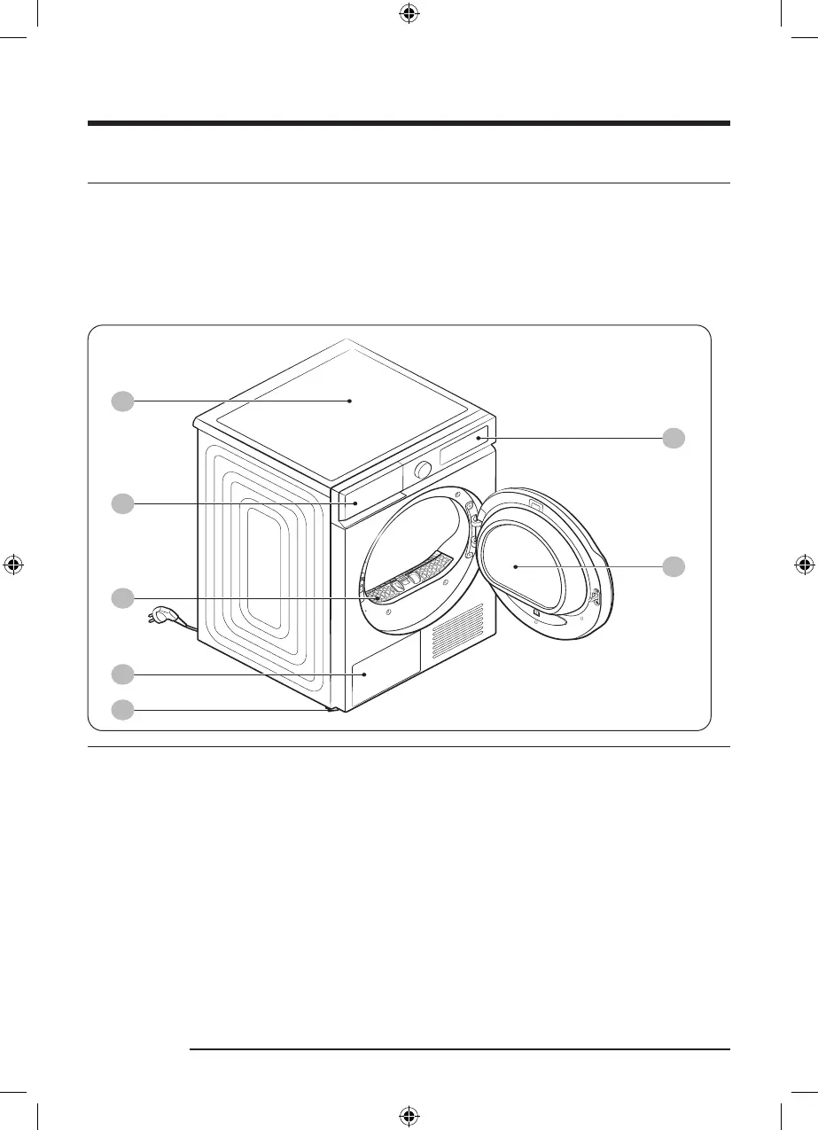 van onderdelen die hieronder worden weergegeven, kunnen bij uw droger verschillen. Voorafgaand aan de