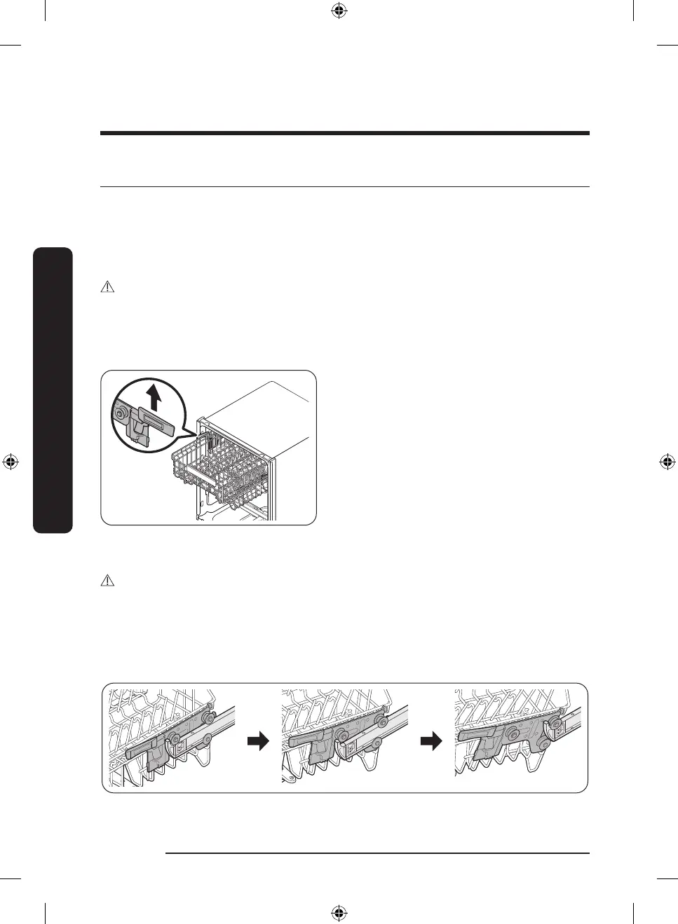 • Zorg dat u beide hendels vasthoudt tijdens het verstellen, anders sluit de deur van de vaatwasser