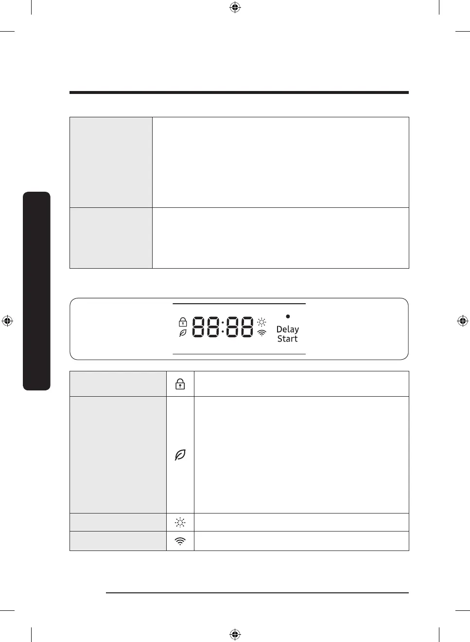 Rinse Rell indicator Lights up if the dishwasher runs out of rinse aid.