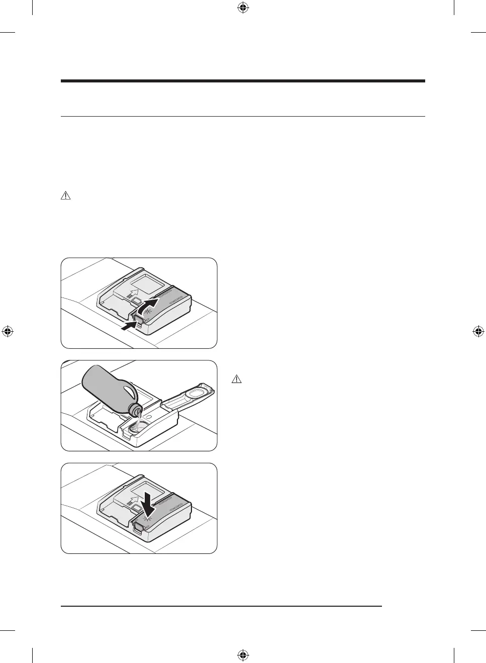 • Do not apply any type of detergent to the rinse aid compartment.