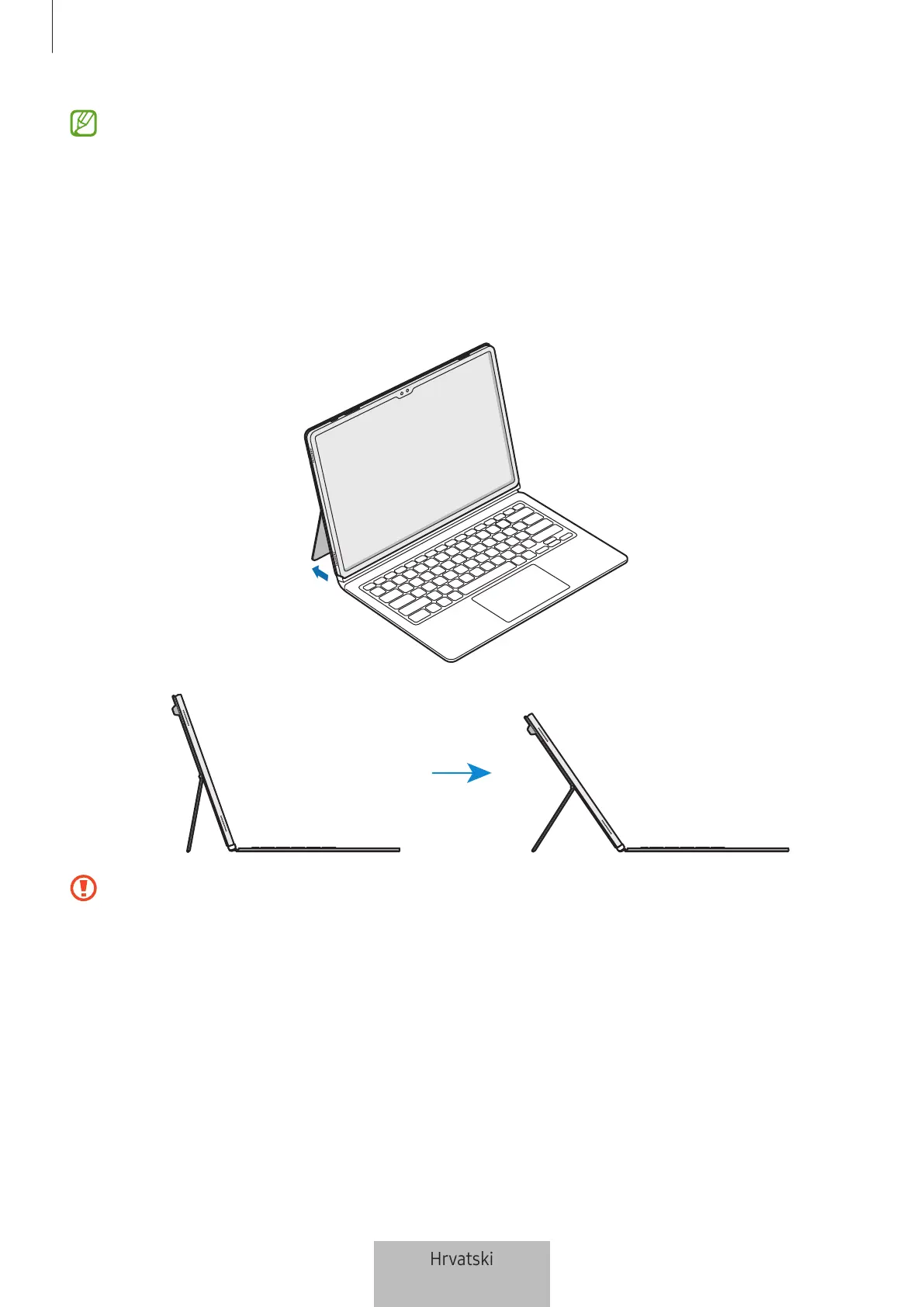 Nemojte pritiskati ekran tableta dok je kut postolja podešen nisko. To bi moglo izazvati