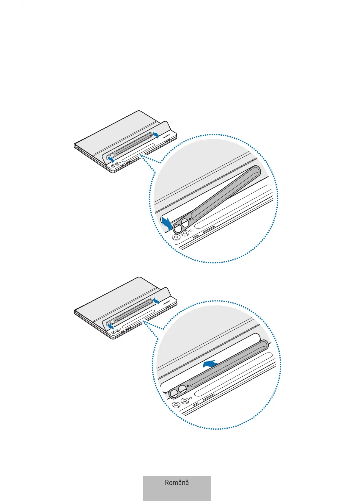 Pentru a atașa carcasa S Pen, aliniați carcasa S Pen cu canelura carcasei S Pen a produsului și împingeți