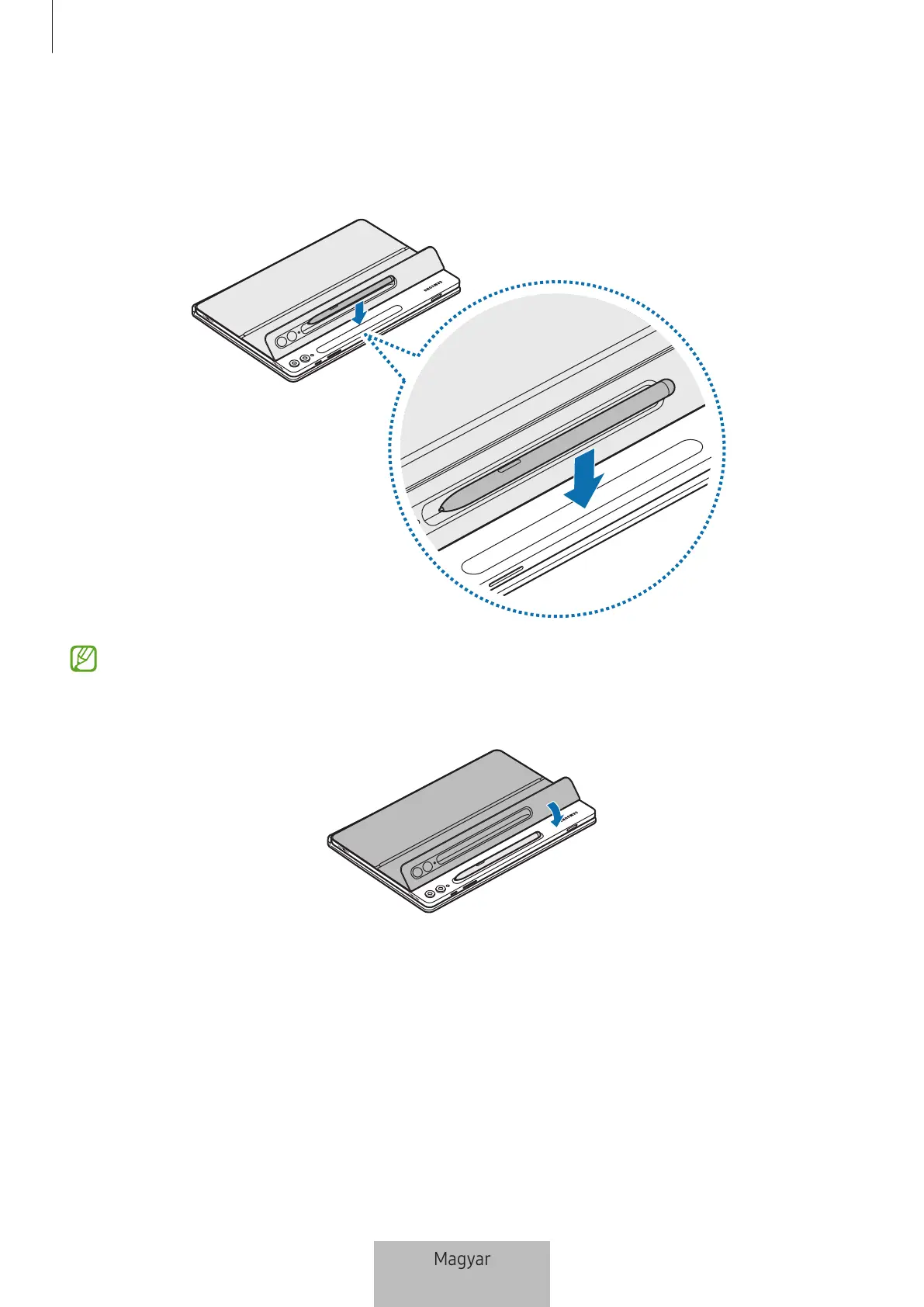 Illessze az S Pen-t az S Pen töltőjébe. Ha az S Pen nincs megfelelően rögzítve, az S Pen fedelét nem lehet