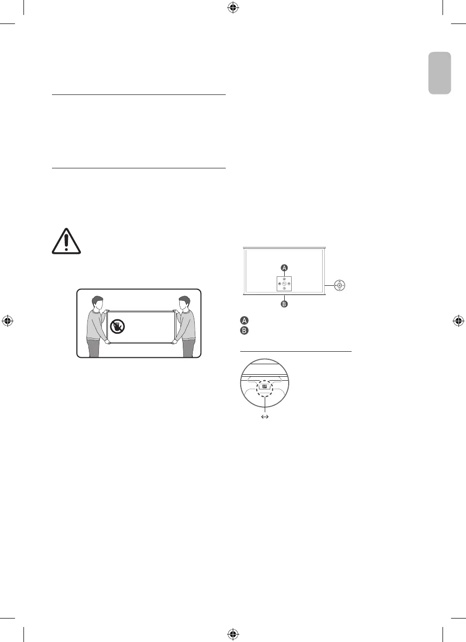 recommend lifting the TV at the edges, as shown.